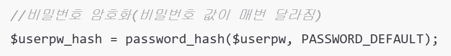 $userpw_hash라는 변수에 비밀번호 암호화,