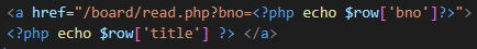 read.php?bno='bno값' 을 입력해서 해당 글 내용으로 이동하게된다