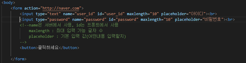 폼의 주소 서버로 전송됨