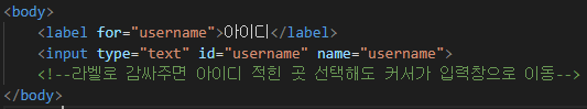 label로 감싸주면 태그 안쪽 아무곳이나 선택해도 입력커서가 이동한다