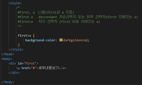 first라는 선택자 안에 a 태그가 있을때