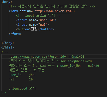 <form action= " "> -> " "의 서버로 사용자가 입력한 내용을 전달한다